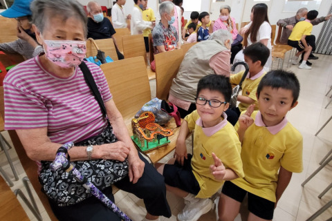 最後,小義工把給長者們送上小心意,大家就高興地說再見了。當中有好幾位長者開心地說:“銘恩小學的學生真的很乖巧啊!”“銘恩小學的同學來探我們,我很開心呀!要多點來啊!”