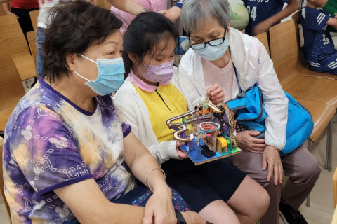 之後,小義工跟跟長者們談天,分享自己的學習生活,訪問長者們的人生經歷。將近尾聲,小義工和長者們來一張大合照。