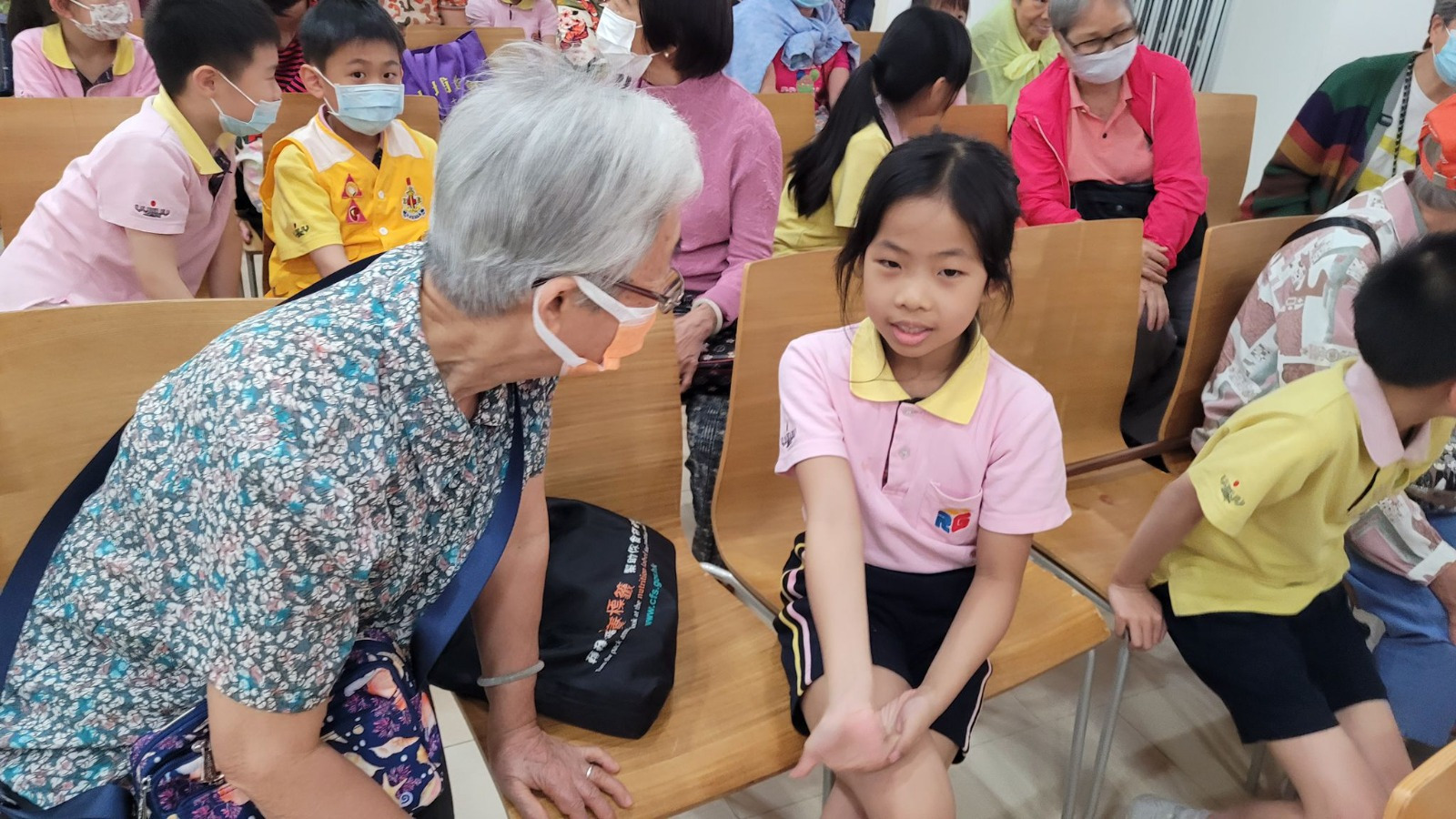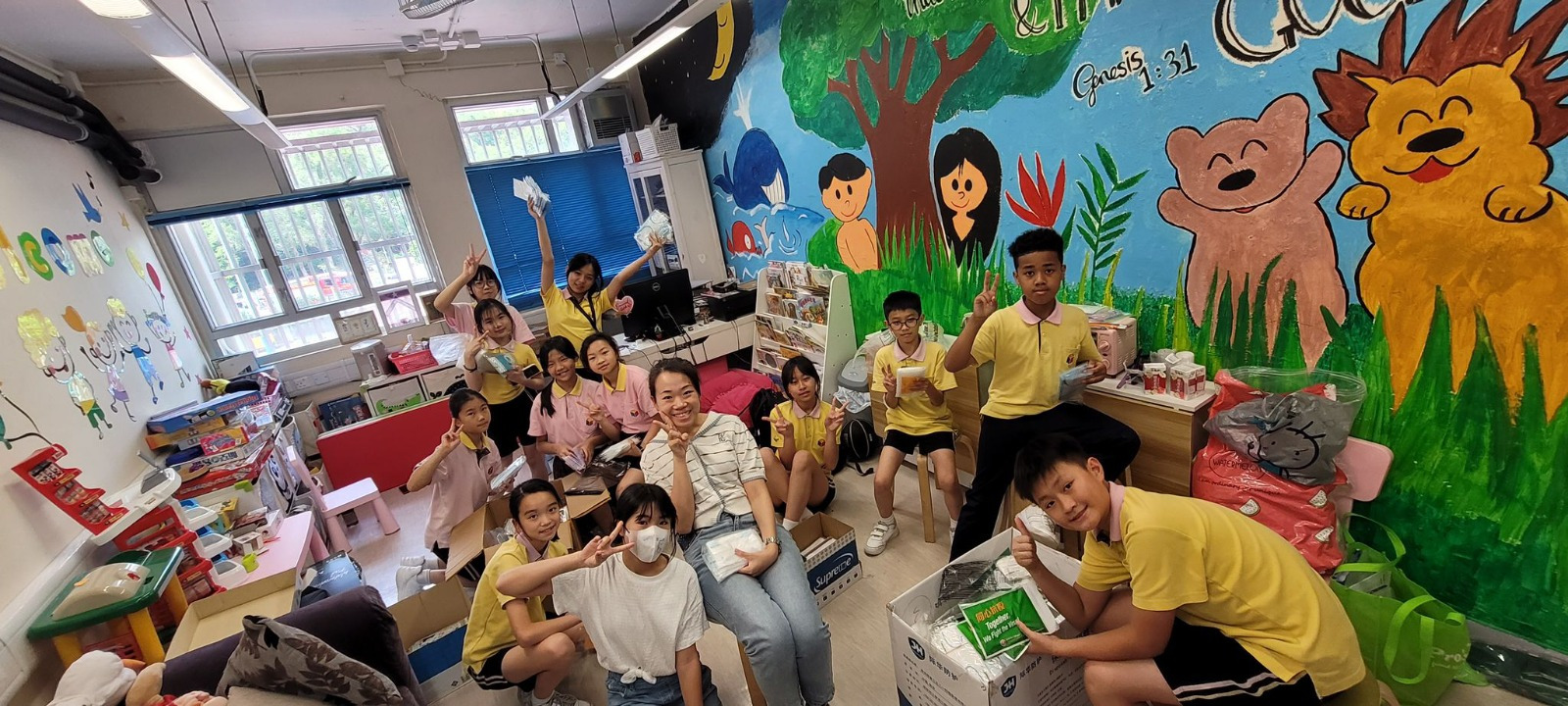 籌備活動過程中,家教會用行動支持,呼籲家長們捐贈口罩作為探訪活動的小心意。感謝大家在捐贈口罩上反應熱烈,短短兩天,我們收集到的口罩多於2000個。JOYCE姑娘帶領一批小六義工幫忙數點口罩,然後把部份口罩包裝成送給老友記的小心意。