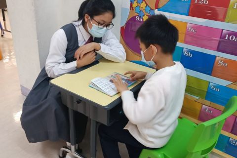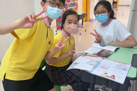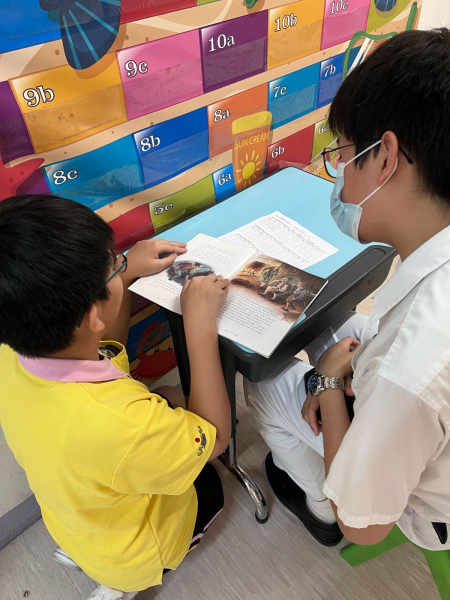 One of the ongoing exchange activities is the “Love Neighbour Buddy Reading Programme” where CPU students generously dedicate their lunch break to volunteer service, accompanying and reading English books with our students. As of April, we have successfully completed two phases of the buddy reading programme.
